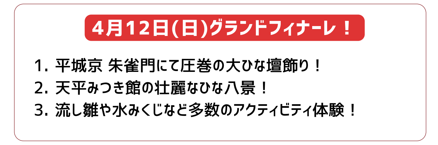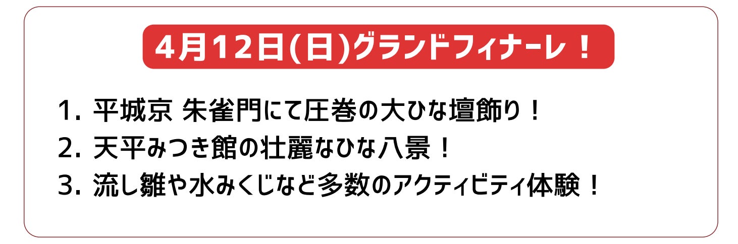 4月12日のグランドフィナ ーレまで平城京ひいな節は開催中