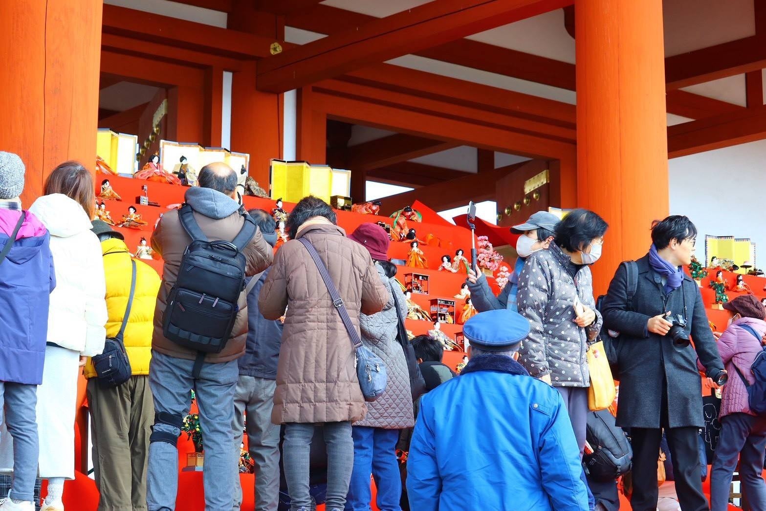 会場の朱雀門エリアには、圧巻のスケールを誇る大ひな壇が設置されており、写真撮影スポットとしても注目を集めています。また、天平みつき館では趣向を凝らした「ひな八景」を展開し、来場者に多様な鑑賞体験を提供しています。さらに、流し雛や水みくじといった参加型コンテンツも充実しており、観覧にとどまらない体験型イベントとしての魅力も特徴です。