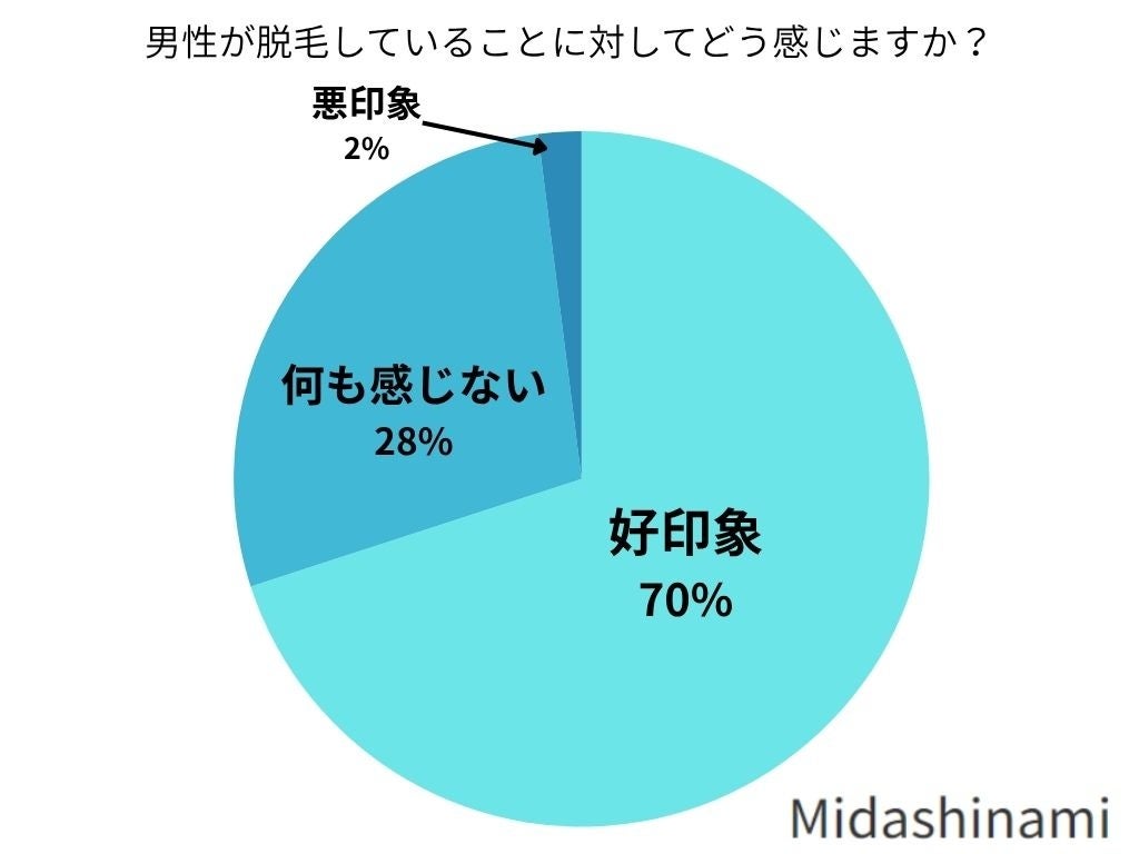 70%の女性が「好印象」と回答しており、男性の脱毛に対して非常にポジティブな印象を持っていることがわかります。