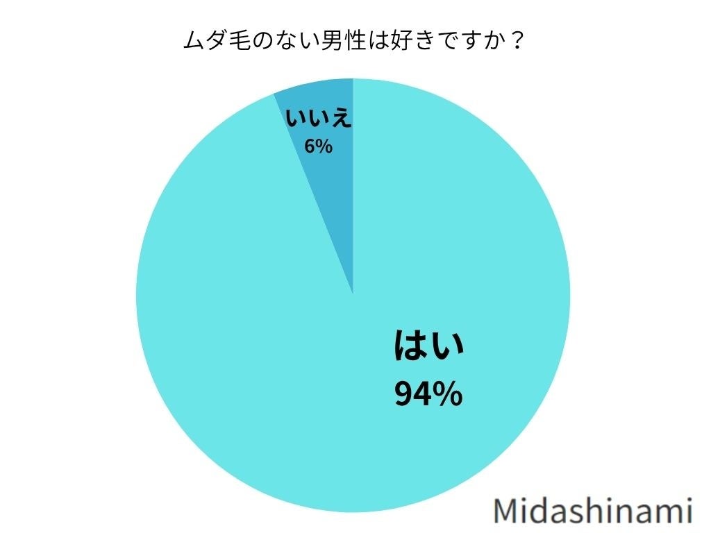 「いいえ」はわずか6%で、大多数の女性が「ムダ毛のない男性」を好むという傾向が見えています。