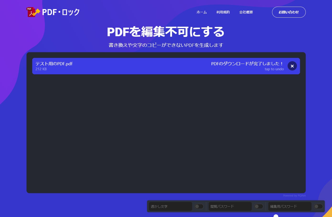 アップロード後、自動的に処理が開始され、ほんの数秒でセキュリティ保護されたPDFがダウンロードされます。直感的な操作で、誰でも手軽に高度なPDFセキュリティを適用できます。