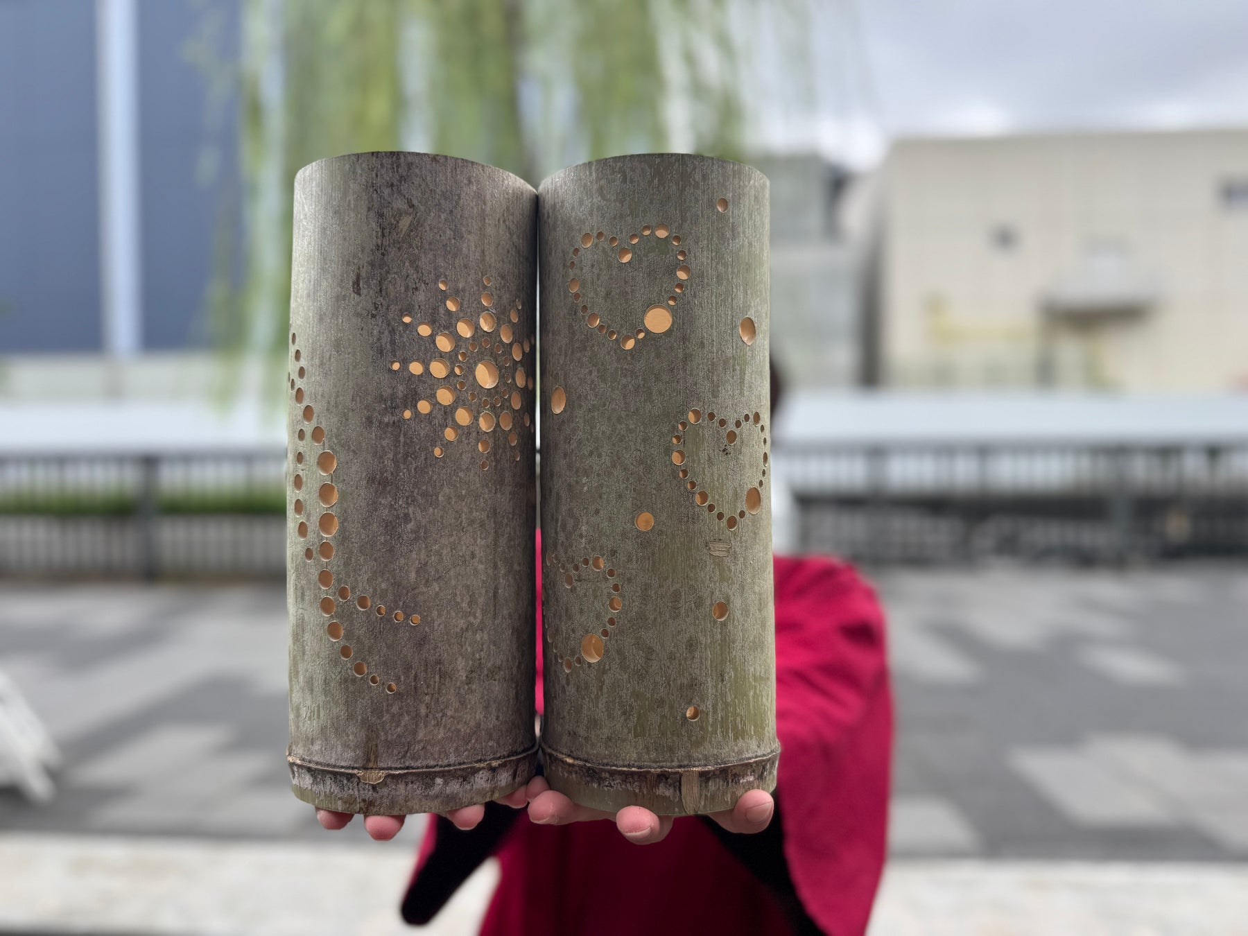 本ワークショップは、地域住民の方々や観光客の方々が竹に模様を施し、オリジナルの竹あかりを制作する体験型プログラムです。完成作品の一部は「東京下町回遊 竹あかり」の会場・隅田公園のライトアップに展示され、もう1本はLEDライト付きで参加者が持ち帰ることができます。