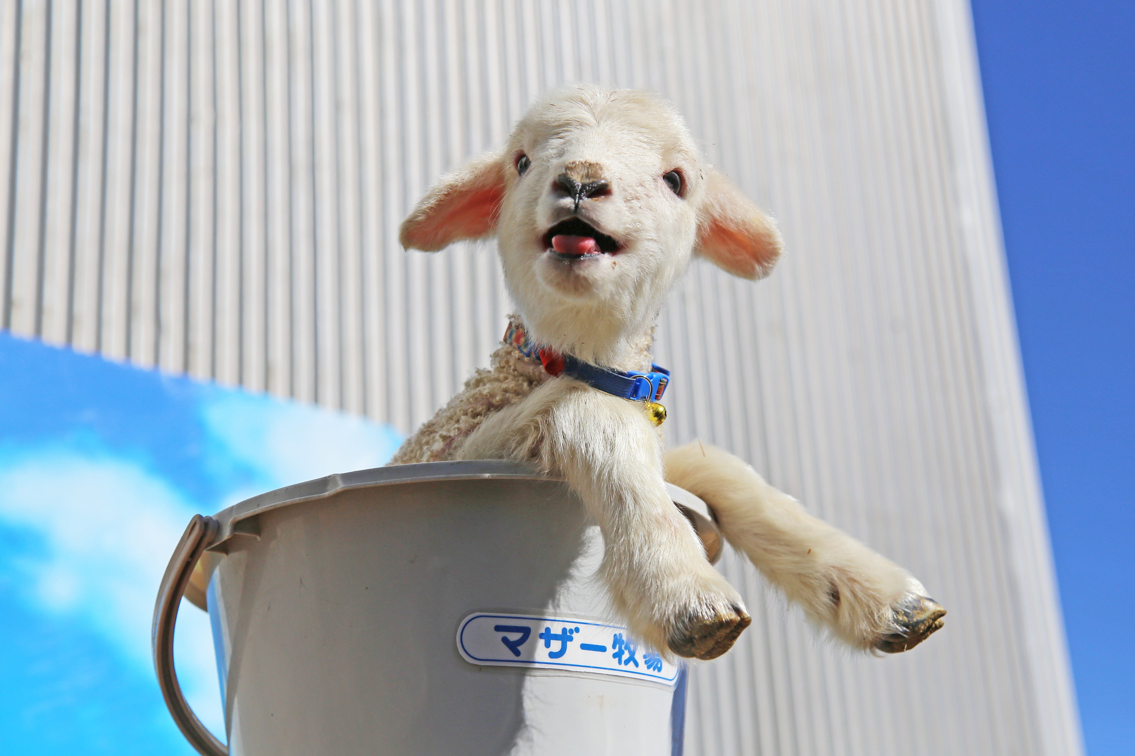 イベントで毎年大人気!マザー牧場発祥こひつじの体重測定スタイル「バケツひつじ」がマスコットキーホルダーになって登場!
