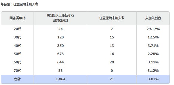 アクティブドライバーの33名に1名(約3%)が未加入。若年層の高さが顕著に。