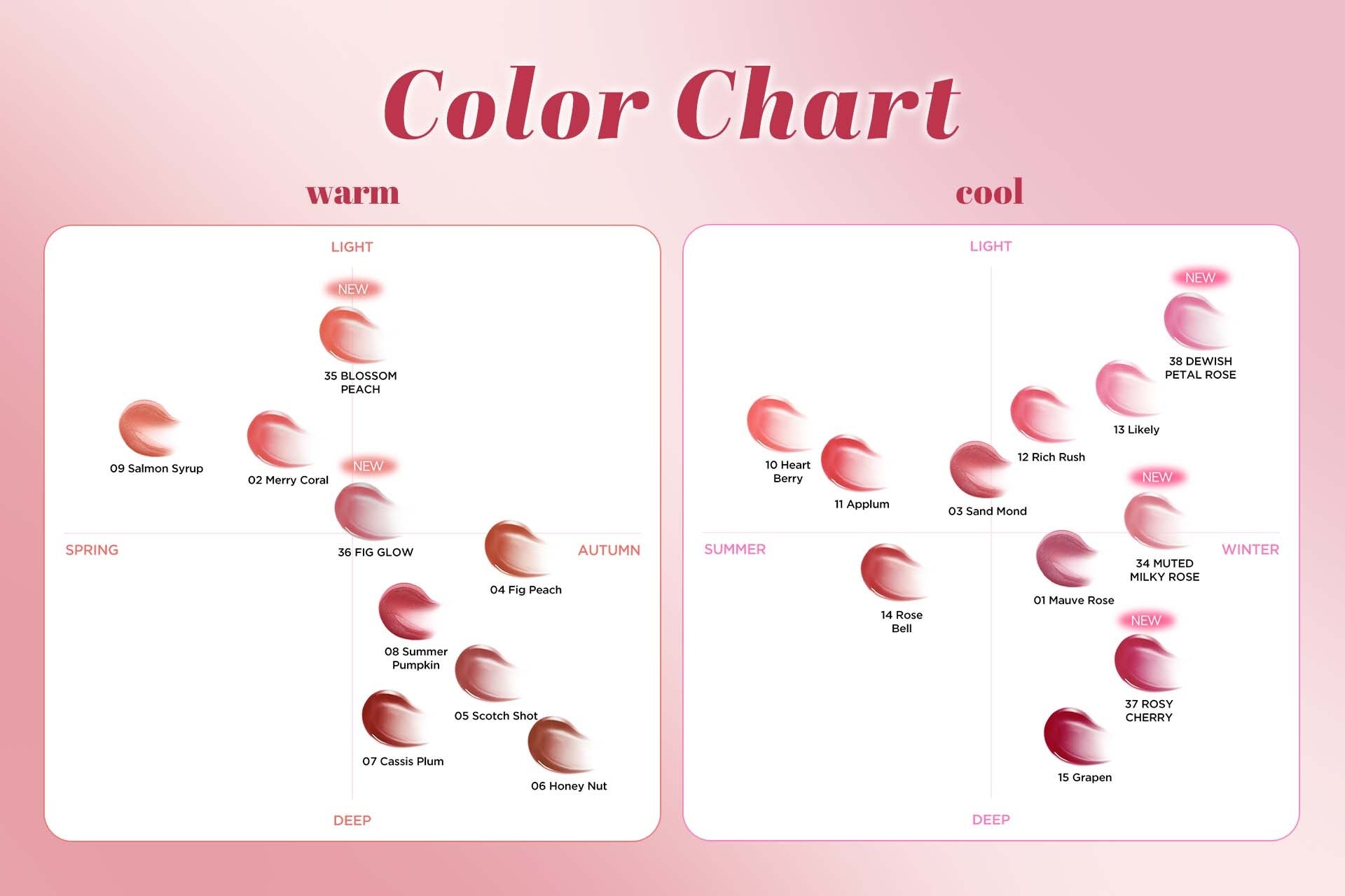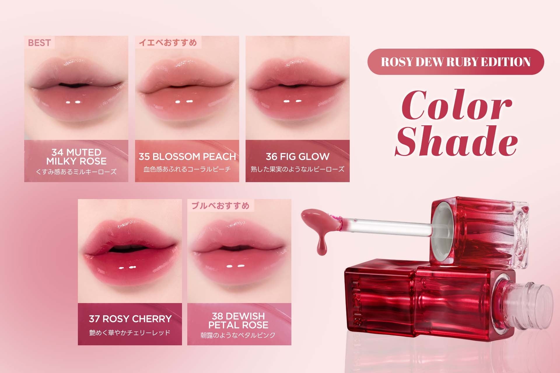 ■カラー:34 MUTED MILKY ROSE/35 BLOSSOM PEACH/36 FIG GLOW/37 ROSY CHERRY/38 DEWISH PETAL ROSE