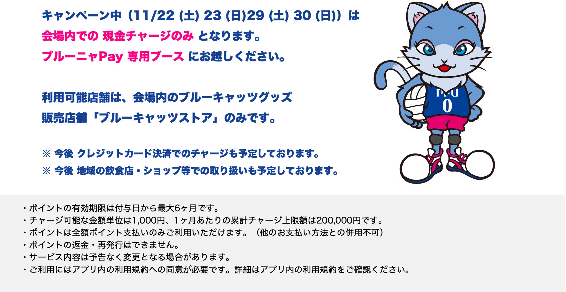※キャンペーン中は、ホームゲーム会場内専用ブースでの現金チャージ、グッズ販売店舗のみの取り扱いとなります。