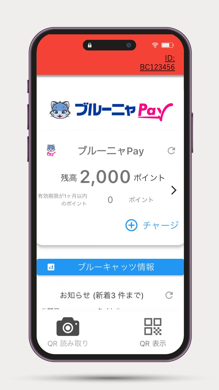 「ブルーニャPay」は、株式会社ミラボが提供する専用スマホアプリ「prairie」をダウンロードし、ポイントをチャージすることで、スマートフォンだけでスムーズにお買い物をお楽しみいただける「ポイントシステム」です。