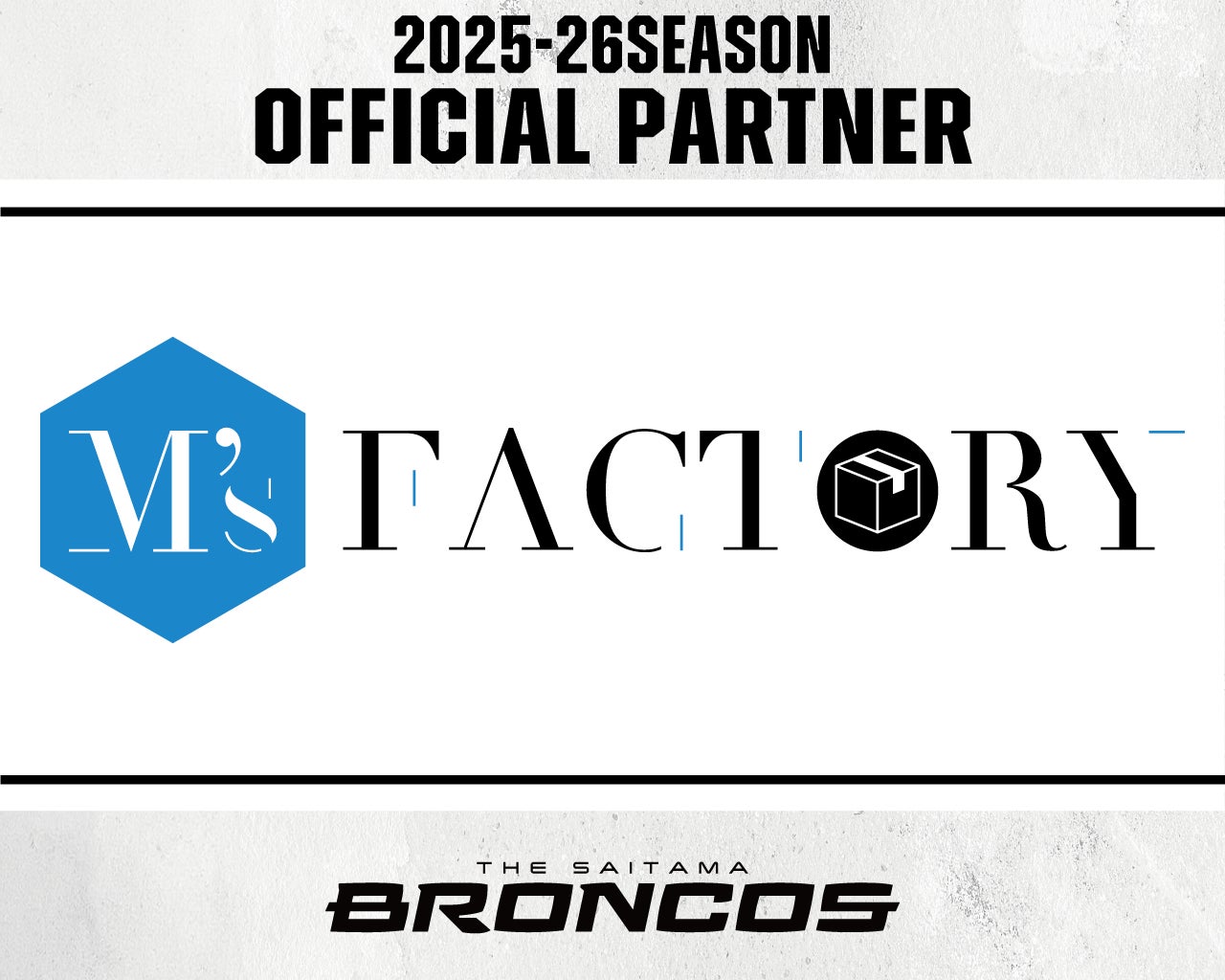 この度、さいたまブロンコスは、M’s Factory株式会社と2025-26シーズンより、オフィシャルパートナー契約を締結いたしましたのでお知らせいたします。