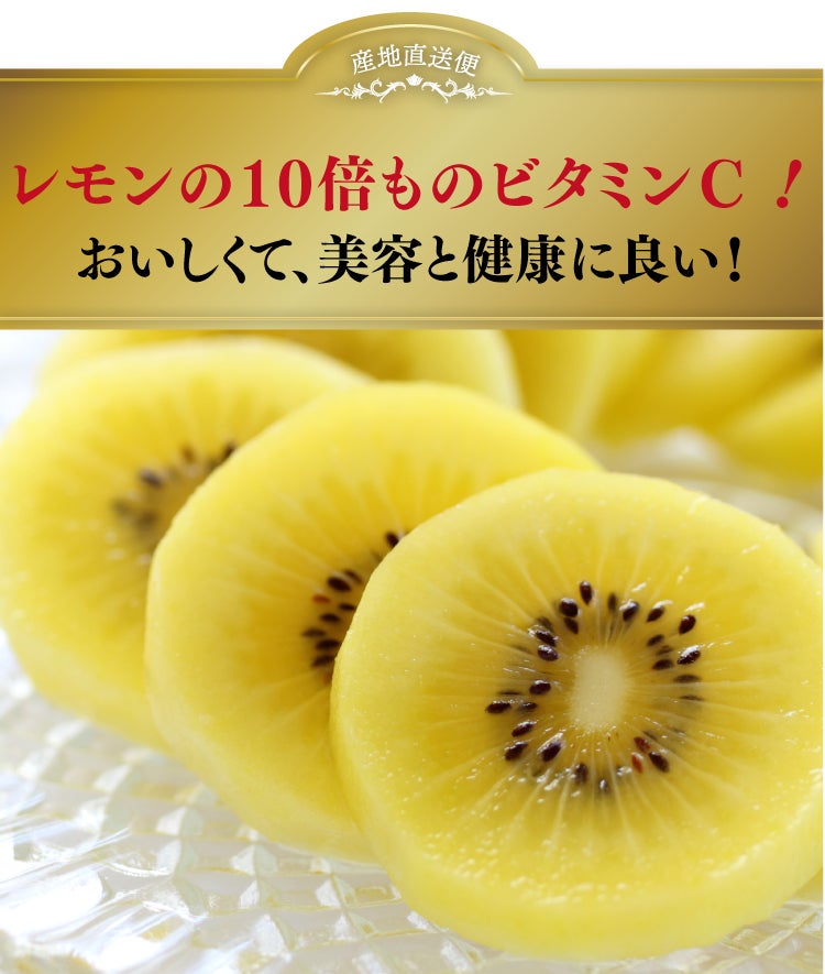 黄金色の綺麗な果肉に濃厚な味わいで、グリーンキウイよりも栄養価が高いのが特徴です。キウイバードブランドの『キウイの大(お)っ黄いたまご』は、果実が大きく食べ応えがあり、香川県による栄養価調査では、一般的なキウイフルーツよりもビタミンEが約2倍、ビタミンCはなんと約3倍も含まれています!またレモンと比べると、ビタミンCが約10倍も多く含まれています!