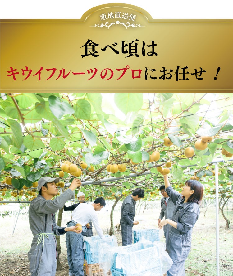 キウイの専業農家が見極めた、一番美味しい食べ頃のタ イミングで収穫・出荷します。(※出荷時期がお届け目安日より前後する可能性がございますが、あらかじめご了承ください。)キウイフルーツは生ものですので、直射日光を避け涼しいところで保存してください。新聞紙に包むか袋に入れて、冷蔵庫の中で保存していただきますと、おいしく召し上がれる期間が数日間継続します。