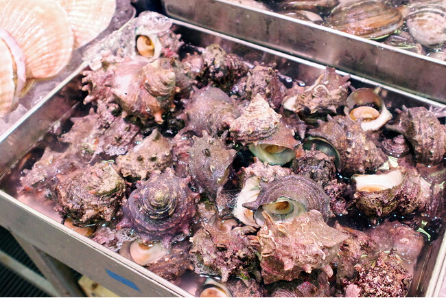 新鮮な魚介は水揚げ次第で様々なものが入荷してきますので、時には見たこともない魚介が並んでいることもあります。BBQコーナーの鉄板アイテムの中にも、時には「え?それも焼けちゃうの?」という魚介が陳列されていることが。