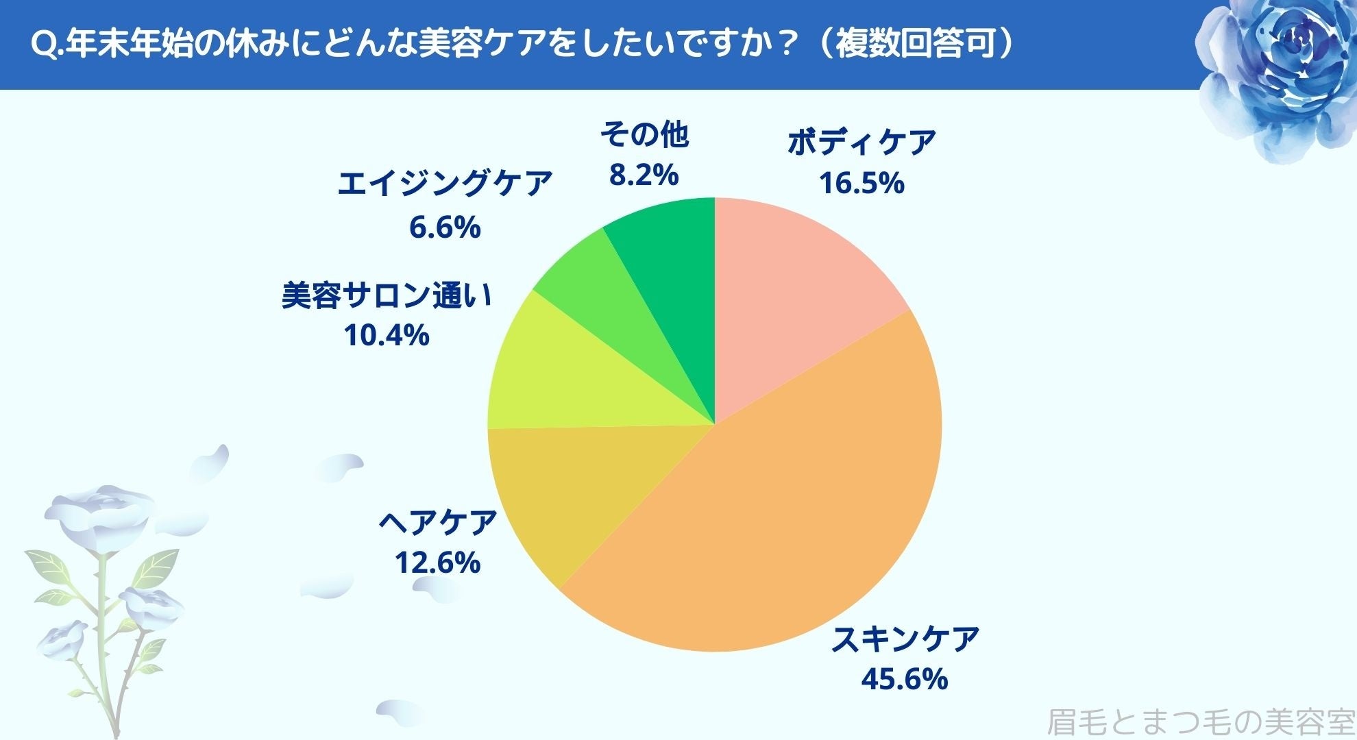 そこで、今回の調査では年末年始の冬休みにどんな美容ケアをやりたいかアンケート調査をしました。美容ケアについて気になる人は、ぜひ最後までお読みください。