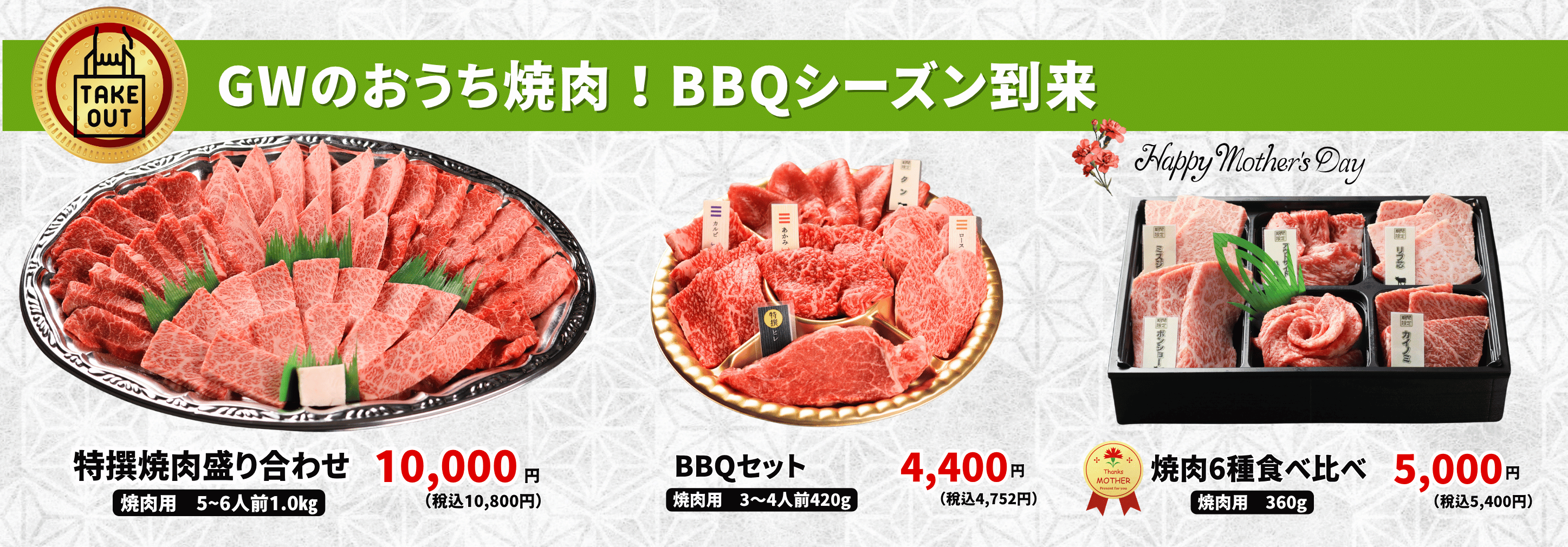 さらに、GWのBBQに最適な「特選焼肉盛り合わせ」や母の日ギフトにも喜ばれる「焼肉6種食べ比べセット」など、プロ厳選のテイクアウトメニューも充実。今年のGWは、いつものおうち焼肉を格上げしてみませんか。
