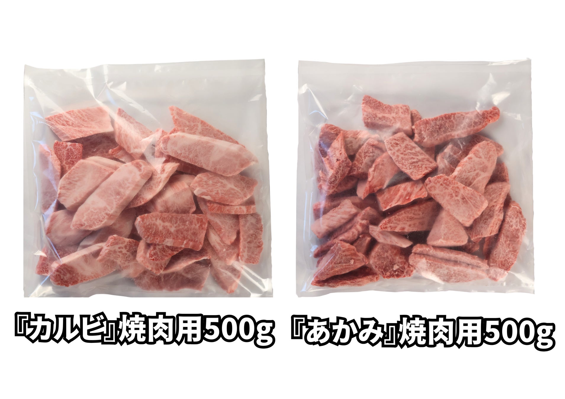 目玉商品は、普段は出回らない業務用商品を、今回初めて放出する特別企画。人気の「カルビ」や「あかみ」各500gを、通常より970円お得な2,980円(税込3,218円)の業務用卸価格で提供いたします。トリミングからカット、急速冷凍、袋詰めまで全て手作業で一貫して自社で行うからこそ実現した驚きの鮮度と価格。焼肉屋さんを始めとし、業務用での大量購入も大歓迎です。