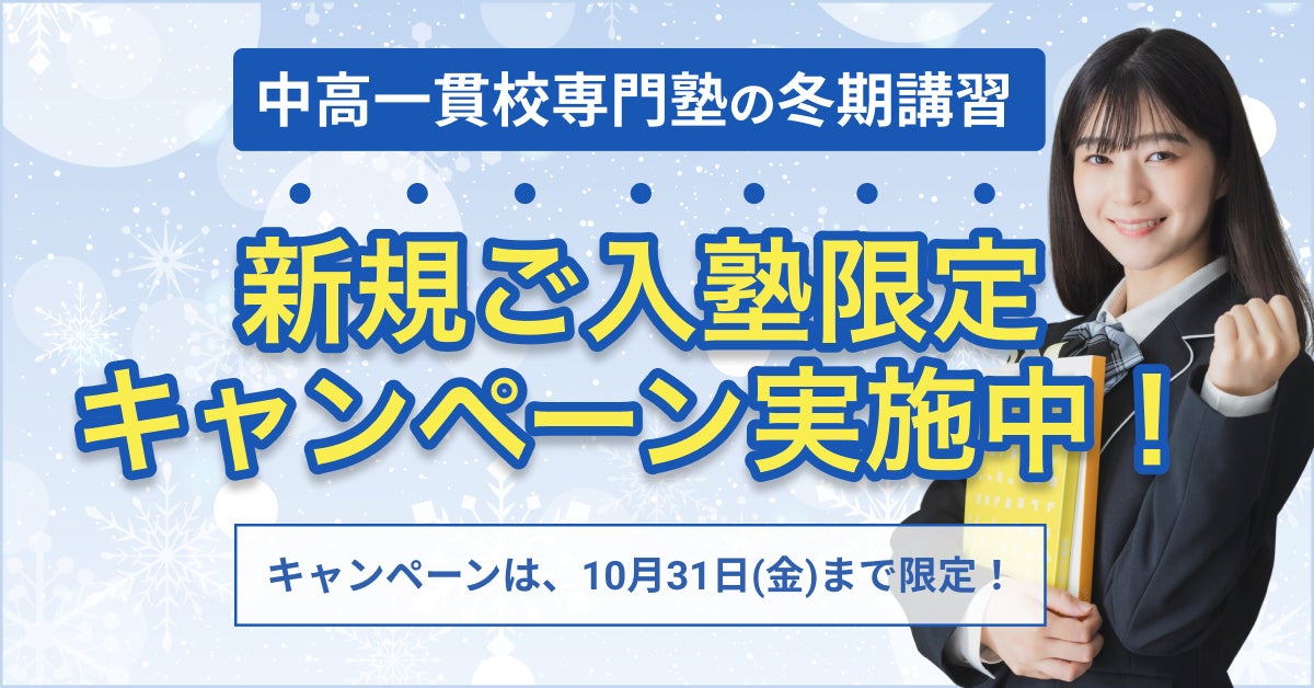 株式会社メイツ(本社:東京都新宿区、代表取締役:遠藤尚範)が運営する『中高一貫校専門 個別指導塾WAYS』は、2025年10月1日(水)より冬期講習のお申し込み受付を開始いたします。併せて、新規入塾者を対象に、10月31日(金)までに冬期講習を規定コマ数以上お申し込みいただくと講習の授業料が最大で7%OFFとなる「冬休み総復習キャンペーン」も実施中!