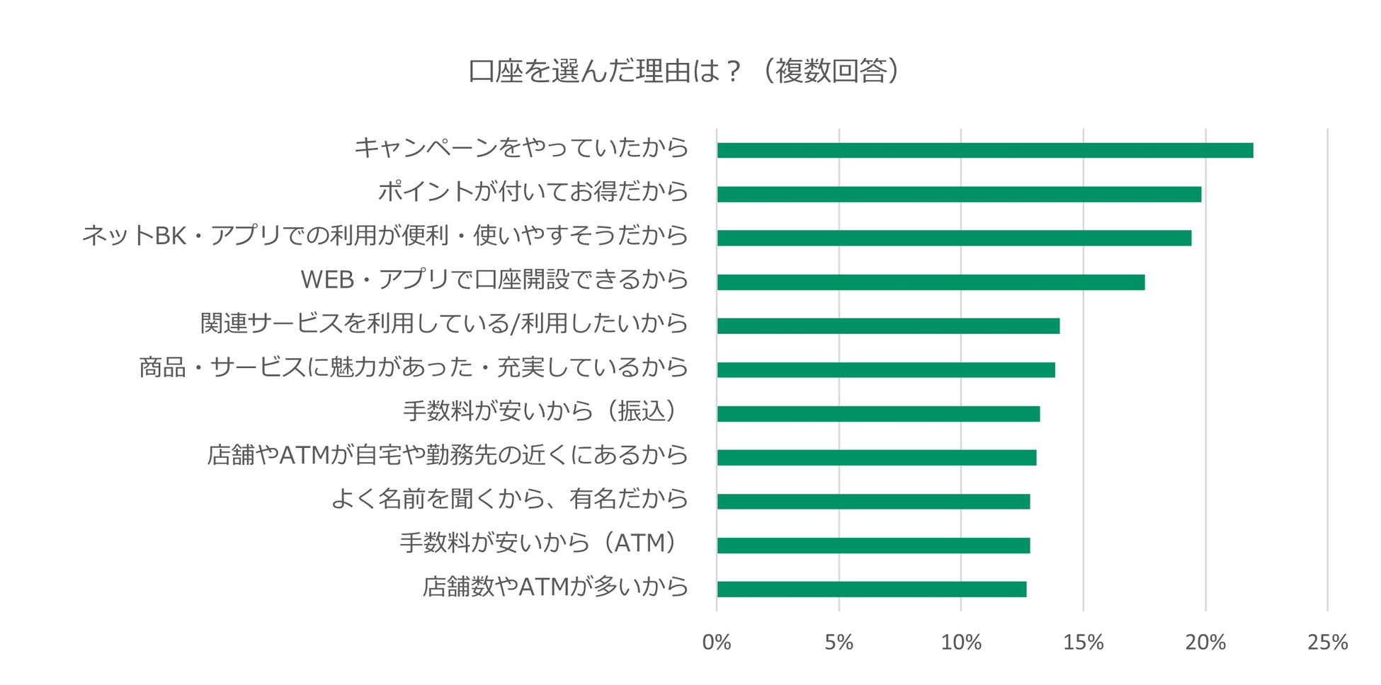 その中で、2口座目を選ぶ理由として、ポイントが付いてお得なことやキャンペーンを実施しているなどの「利得性があること」、およびインターネット・アプリでの使い勝手が良さそうなことやWEB・アプリで口座開設が完結できるなどの「WEBでの利便性が高いこと」の2つが上位にランクインしており、これらのニーズに合ったOliveは日々ご利用者を拡大していっております。