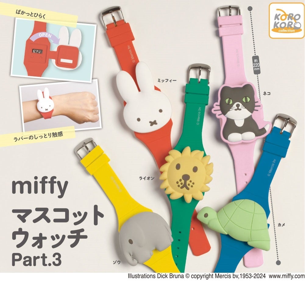 アイピーフォー株式会社(本社:東京都豊島区、代表取締役社長:小濵 剛)は、「ミッフィー マスコットウォッチPart.3」(1回400円・税10%込、全5種)を2024年6月中旬から順次、全国のカプセルトイコーナーにて発売予定です。