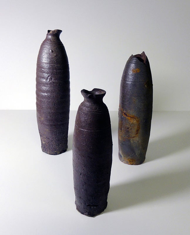 焼締陶器の瓶は、琉球の壺屋焼(つぼややき)と呼ばれる焼物で、泡盛と呼ばれるお酒の容器として使われました。江戸時代、島津氏を通して、泡盛は献上品として主に江戸へ運ばれ、大坂へは御礼参りとして大坂城代と大坂船奉行へ1~2壺が献上されていました。出土品は鳥取藩蔵屋敷跡や高松藩蔵屋敷跡などから見つかったもので、薩摩藩からの贈り物であったかもしれません。はるばる琉球から運ばれてきたお酒として、または腹の病や刀傷に効く薬として泡盛は珍重されていたようです。