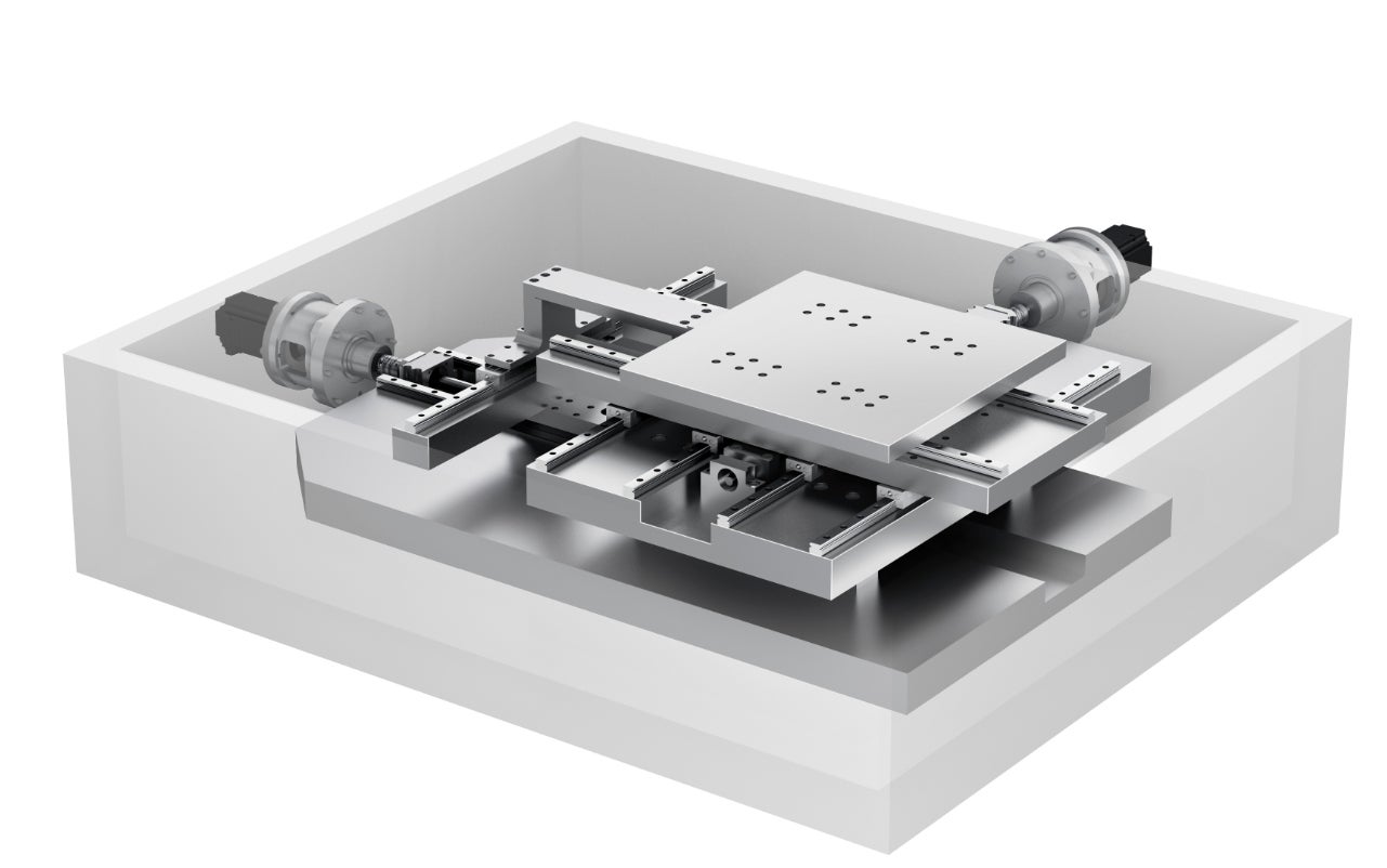 半導体や電子ビームリソグラフィなど真空・クリーン環境向けの高精度XYテーブル。NSK独自の材料・潤滑技術により低アウトガス*2 と長期安定稼働を実現。モータを大気側に配置し、発熱影響を抑えつつ高自由度設計を可能にします。