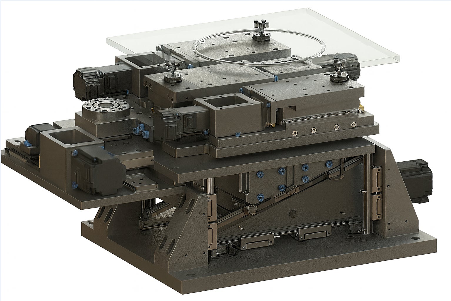 半導体や光学デバイス製造で要求されるサブミクロン精度の位置決めを実現。くさび機構と高精度ボールねじ・リニアガイドにより高剛性と再現性を両立。構造最適化により整定が速く、生産工程の高スループットに貢献します。