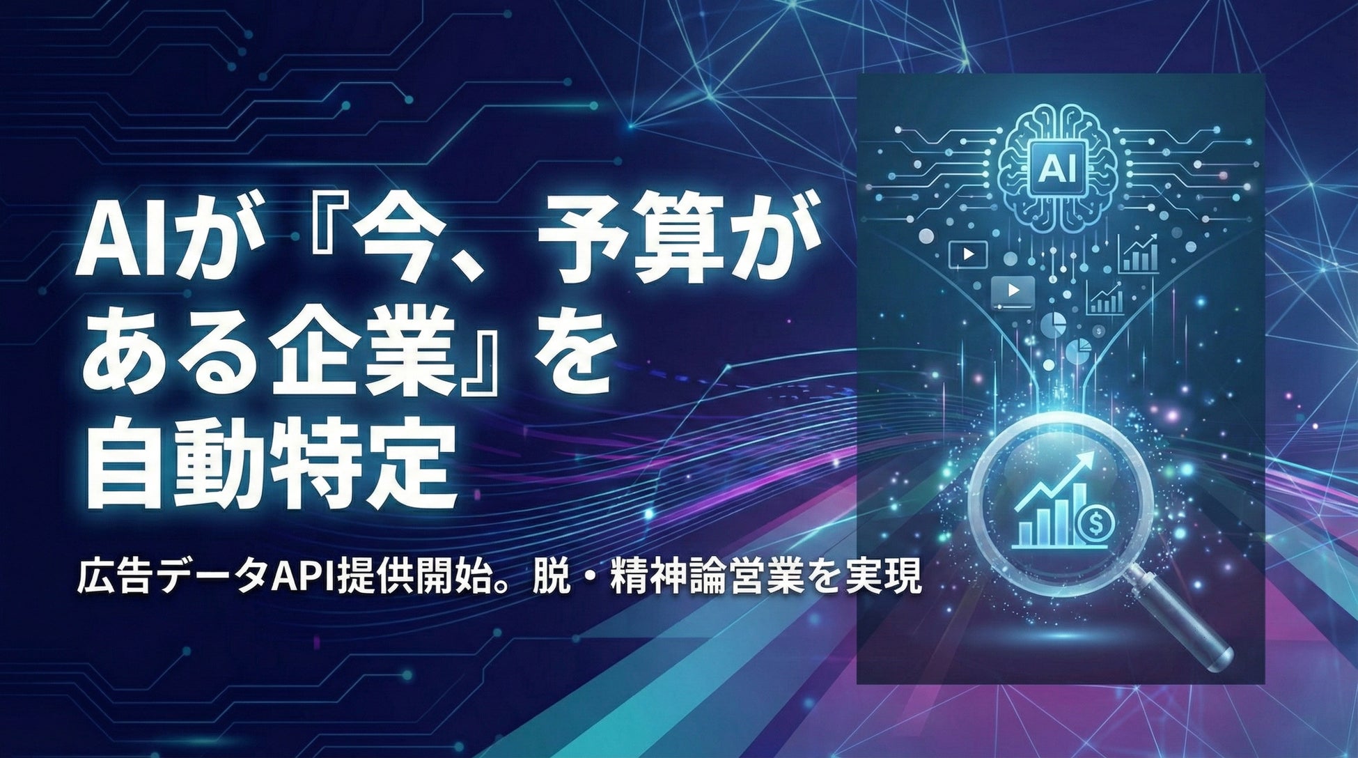 広告出稿の増減から“今、予算がある企業”をAIが自動特定する「広告データAPI」を提供開始 〜精神論の営業から脱却。国内最大級の広告データベースを活用し、成約確度の高いリスト作成を自動化〜