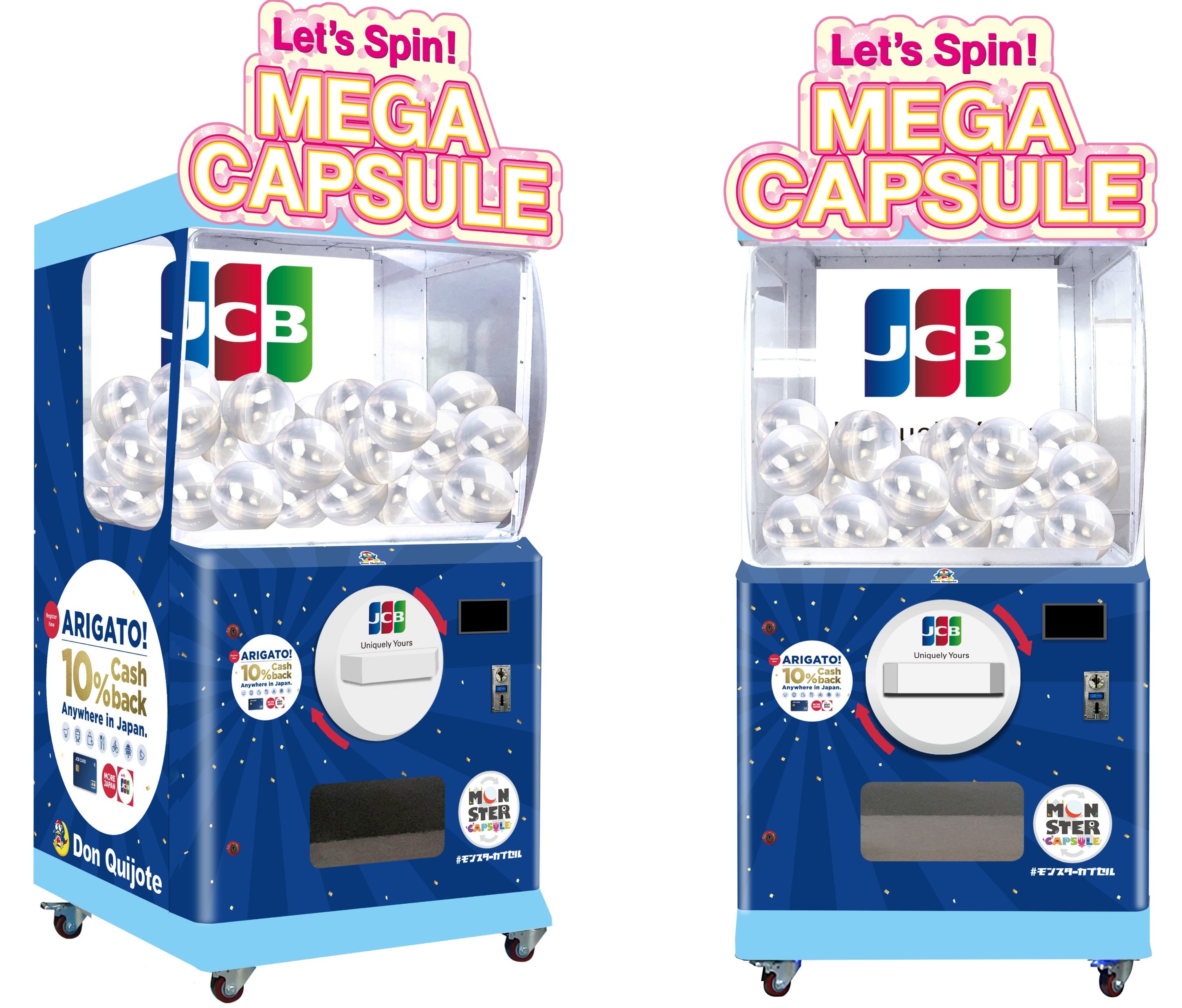 巨大ガチャ「モンスターカプセル」の企画・運営を行う株式会社グリーグローブ(本社:東京都文京区/代表取締役:上村 正治)は、日本発唯一の国際カードブランド運営会社である株式会社ジェーシービー(本社:東京都港区、代表取締役会長兼執行役員社長:二重 孝好) の海外業務を行う子会社、株式会社ジェーシービー・インターナショナル(本社:東京都港区、代表取締役社長:陽川 勝樹)およびパン・パシフィック・インターナショナルホールディングス(以下、PPIH)(本社:東京都渋谷区 代表取締役社長 CEO: 森屋 秀樹)とともに開催する、海外発行のJCBカード会員を対象とした利用促進イベントに、高さ2.0mの巨大ガチャ「モンスターカプセル」機材を1台提供します。MEGAドン・キホーテ渋谷本店で実施されるイベントは2026年4月10日(金)~4月20日(月)の11日間開催されます。