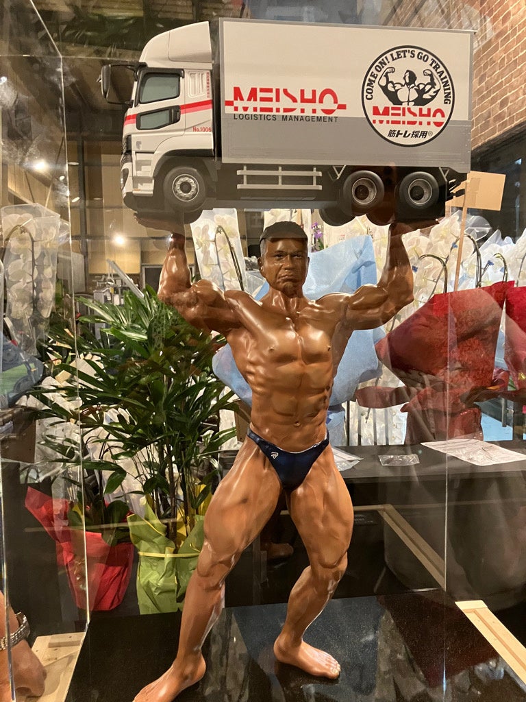 JBBFトップボディビルダー・木澤大祐氏が代表を務める「ジュラシックアカデミー」愛知県港区にてリニューアルオープン!名正運輸株式会社より、木澤氏そっくりの特製フィギュアをサプライズ贈呈