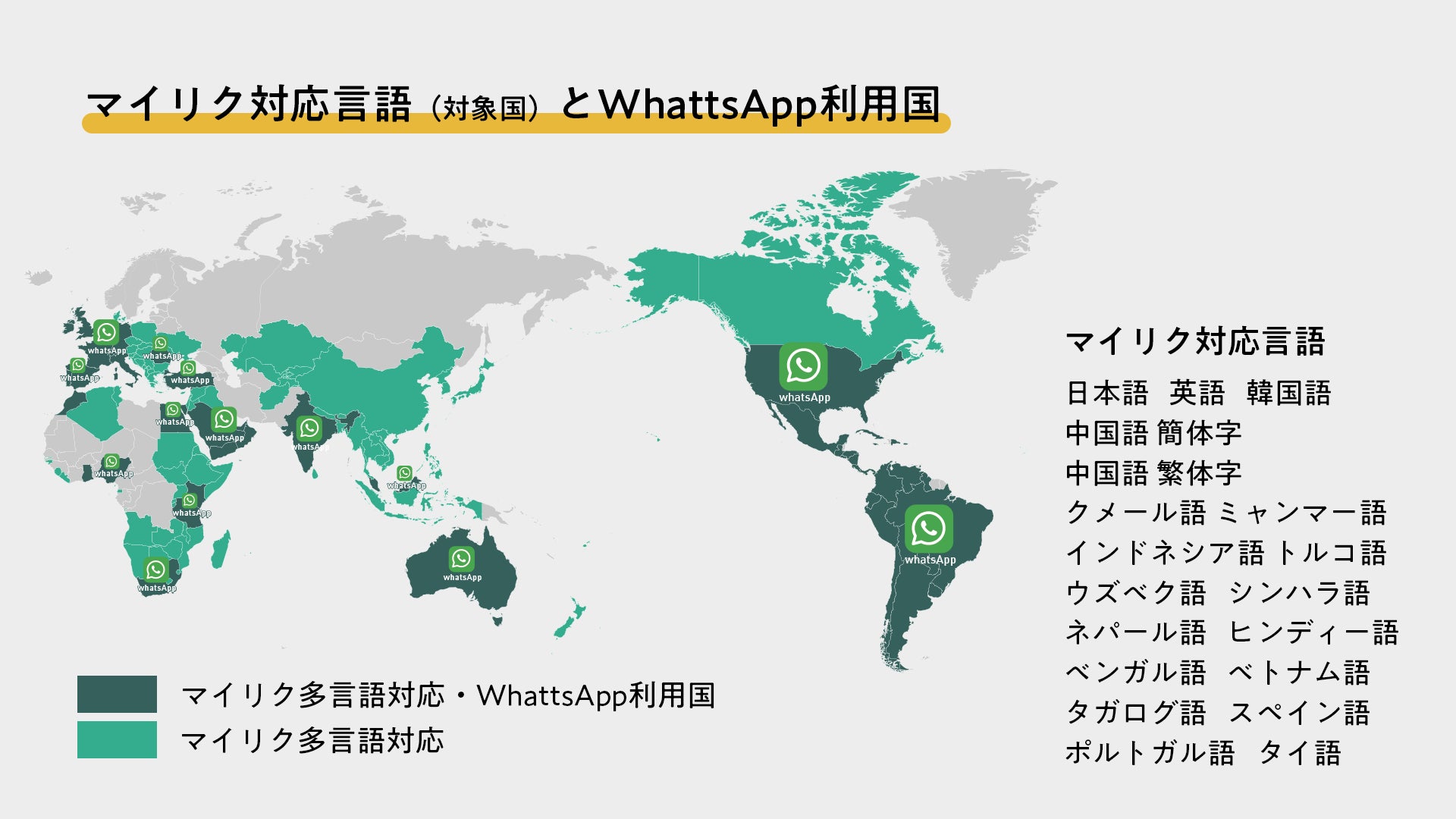 こうした背景のもと、180ヵ国以上で利用され、月間アクティブユーザー20億人を超える世界最大級のメッセージングアプリであるWhatsAppの企業利用版「WhatsAppビジネス公式アカウント」と「マイリク」を連携。