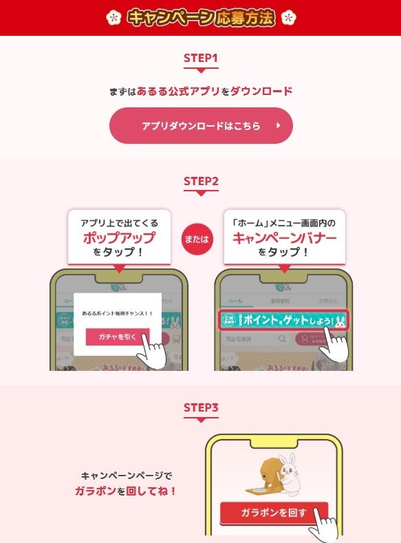 STEP2 あるる公式アプリ上で出てくるポップアップまたは、「ホーム」メニュー内のキャンペーンバナーをタップ!