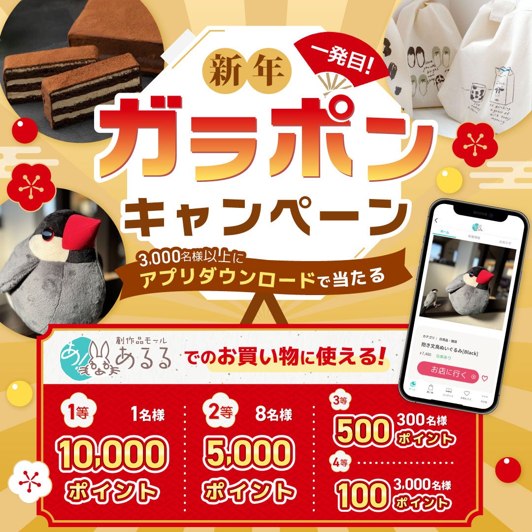 株式会社システムリサーチ(本社:愛知県名古屋市)が運営している「創作品モールあるる」(以下、あるるモール)は2024年12月31日(火)~ 2025年1月20日(月)までの期間、『あるる新年一発目ガラポンキャンペーン』を開催いたします。