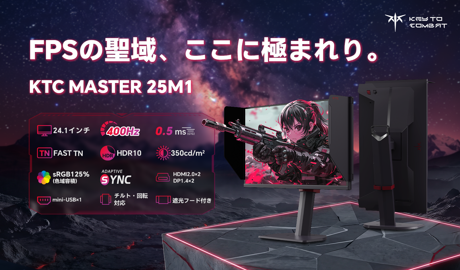 ゲーミングモニターブランド「KEY TO COMBAT(略称:KTC)」は、プロフェッショナルFPSプレイヤーに向けたフラッグシップモデル 「MASTER 25M1」 を、2025年3月より販売開始いたしました。