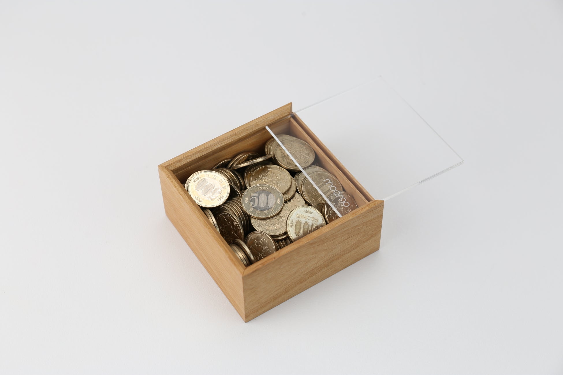 木の温かみに癒される、小銭をおしゃれに収納できる貯金箱です。