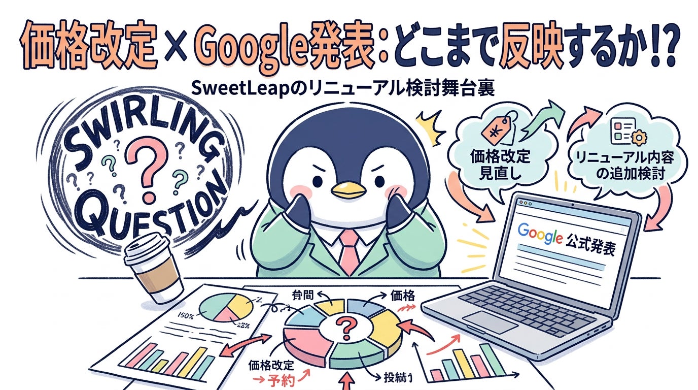 そのためSweetLeap株式会社では、もともと進めていた価格改定に伴う見直しに加えて、今回のGoogle公式発表を受け、リニューアル内容の中でどこまで追加アップデートとして反映するかを検討しています。