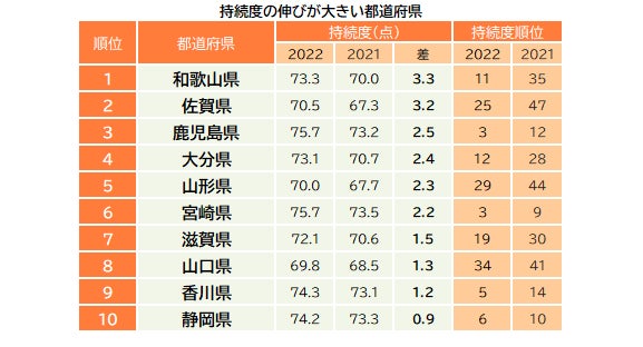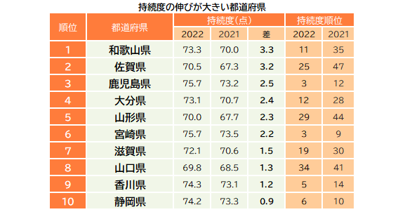 持続度2位は福岡県。持続度が最も伸びたのは和歌山県