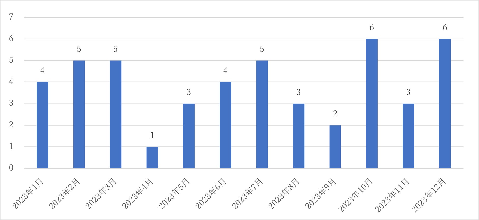 図6 2023年1月から12月までの「少子化」のワードを含む月別入札公告件数推移