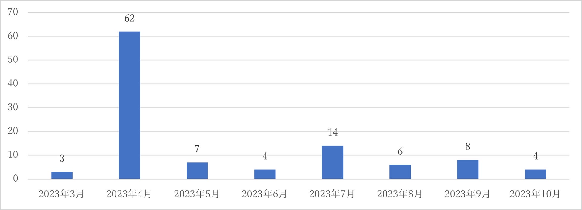 図3 2023年3月から10月までの「こども家庭庁」のワードを含む月別落札金額推移