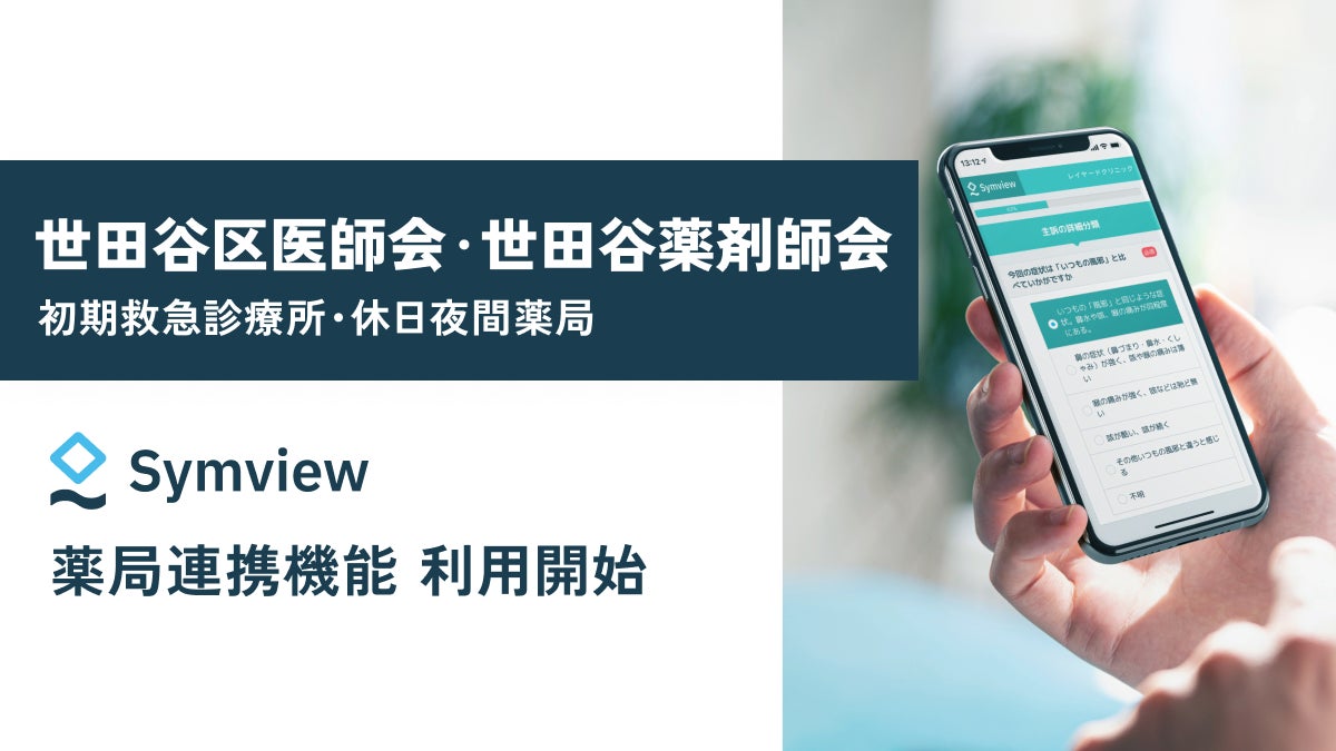 世田谷区医師会は、初期救急診療所で活用している株式会社レイヤード(本社:福岡市博多区、代表取締役社⻑:毛塚牧人)のWEB問診「Symview(シムビュー)」を、世田谷薬剤師会と協力して休日夜間薬局にも導入し、9月1日より利用を開始しました。これにより希望する患者の問診データが診療所・薬局間で共有さるようになるため、患者は薬局で再度問診票に記入する必要がなくなり、薬剤師が事前に患者の症状や受診目的を把握できるため、より的確な服薬指導が可能となり薬局のシステムへの患者入力の効率化も図ることができます。