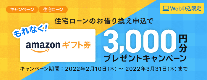 「《Web限定》住宅ローン 借り換えのお客さまにAmazonギフト券プレゼントキャンペーン」実施のお知らせ