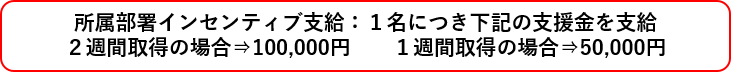一定期間の取得を条件に、育児休業取得者の所属部署に対するインセンティブを支給する制度。