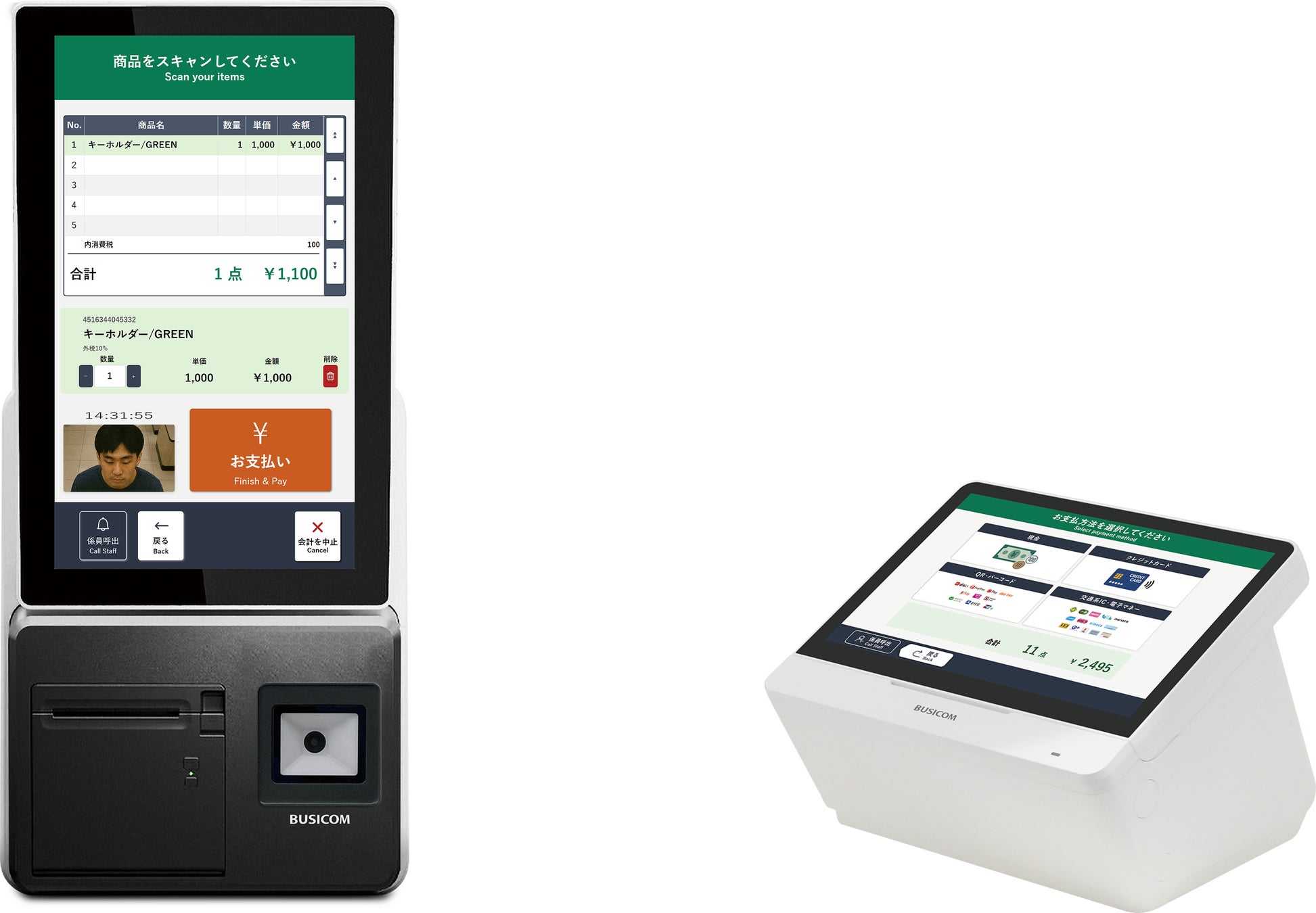 ・QRコードリーダー内蔵でキャッシュレス決済に対応