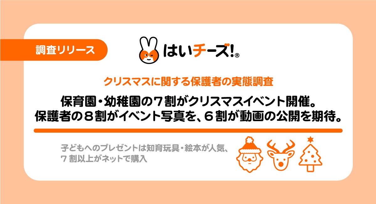 【クリスマスに関する保護者の実態調査】保育園・幼稚園の約7割が「お楽しみ会」「発表会」などのクリスマスイベントを開催。保護者の約8割がイベント写真の公開を、約6割が動画の公開を期待。