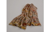 <佐藤繊維>表情豊かな糸が組み合わされたストール。山形県寒河江地方で、紡績から編みたてまで一貫して行う<佐藤繊維>が手がけたものです。もの作りへの情熱と熟練の技が生んだ「意匠糸」は、色も太さも形状もランダムに変化する、まるでアートのような糸です。