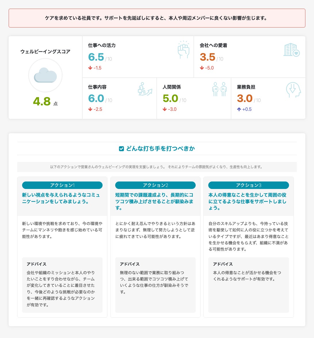 メンバーのメンタル状態と性格情報より、どのようなマネジメントをすべきかひと目で把握できます