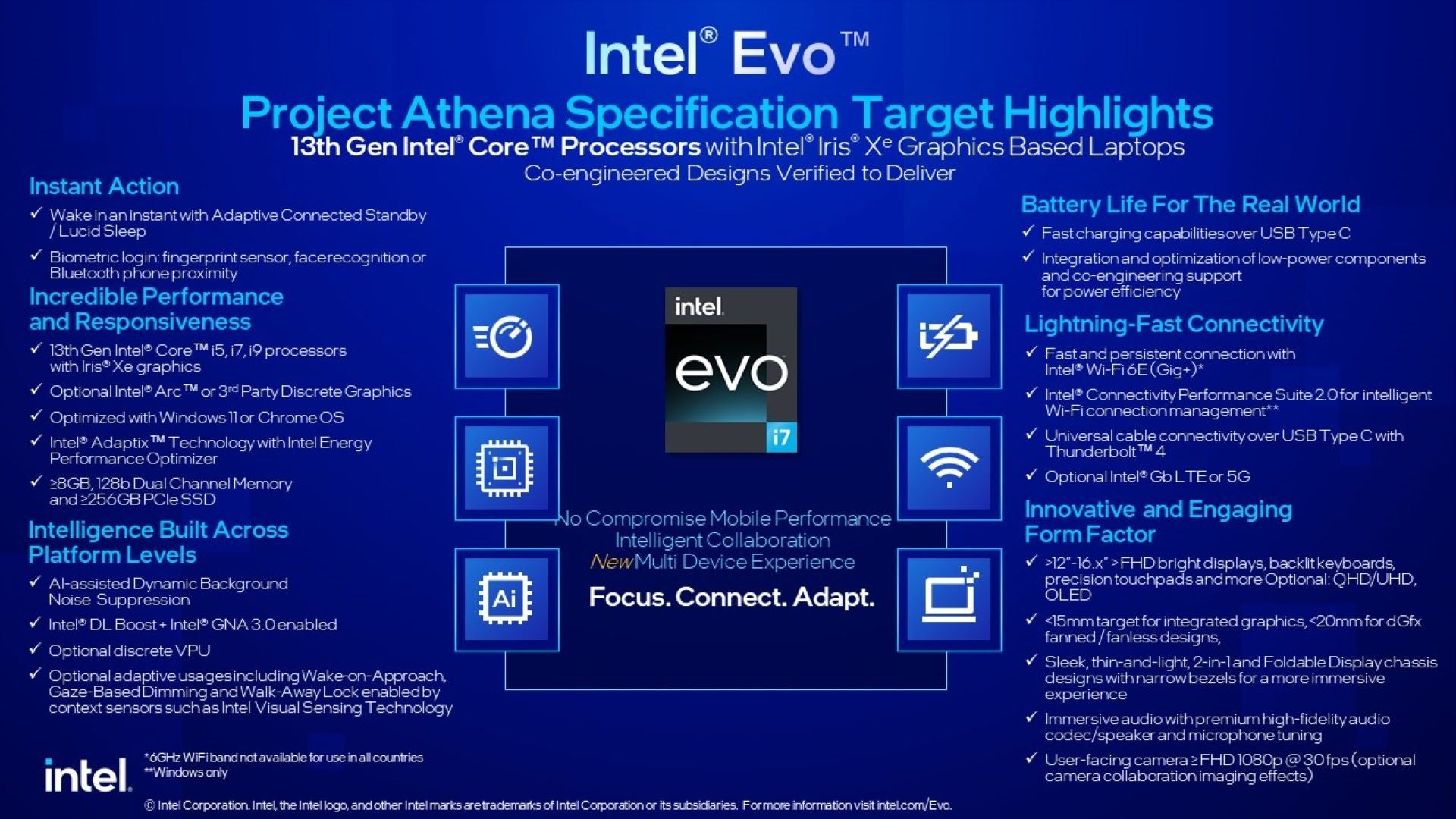- インテルは、実環境での長時間バッテリー駆動時間の実現や、新たなマルチデバイス体験を提供するインテル® Unison™ ソフトウェアを搭載、といった機能を含む、インテル® Evo™ノートブックPCの最新仕様を公開しています。