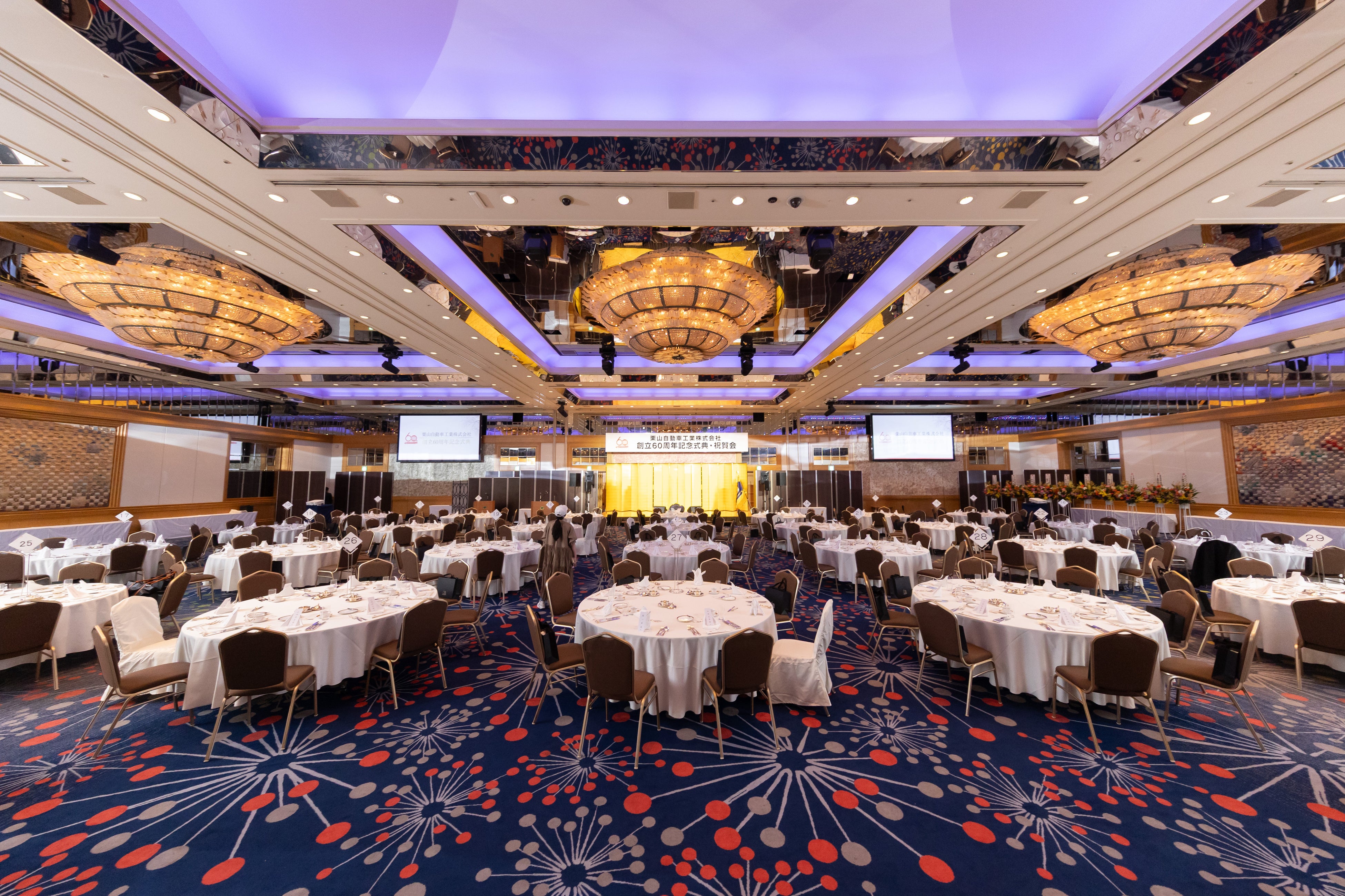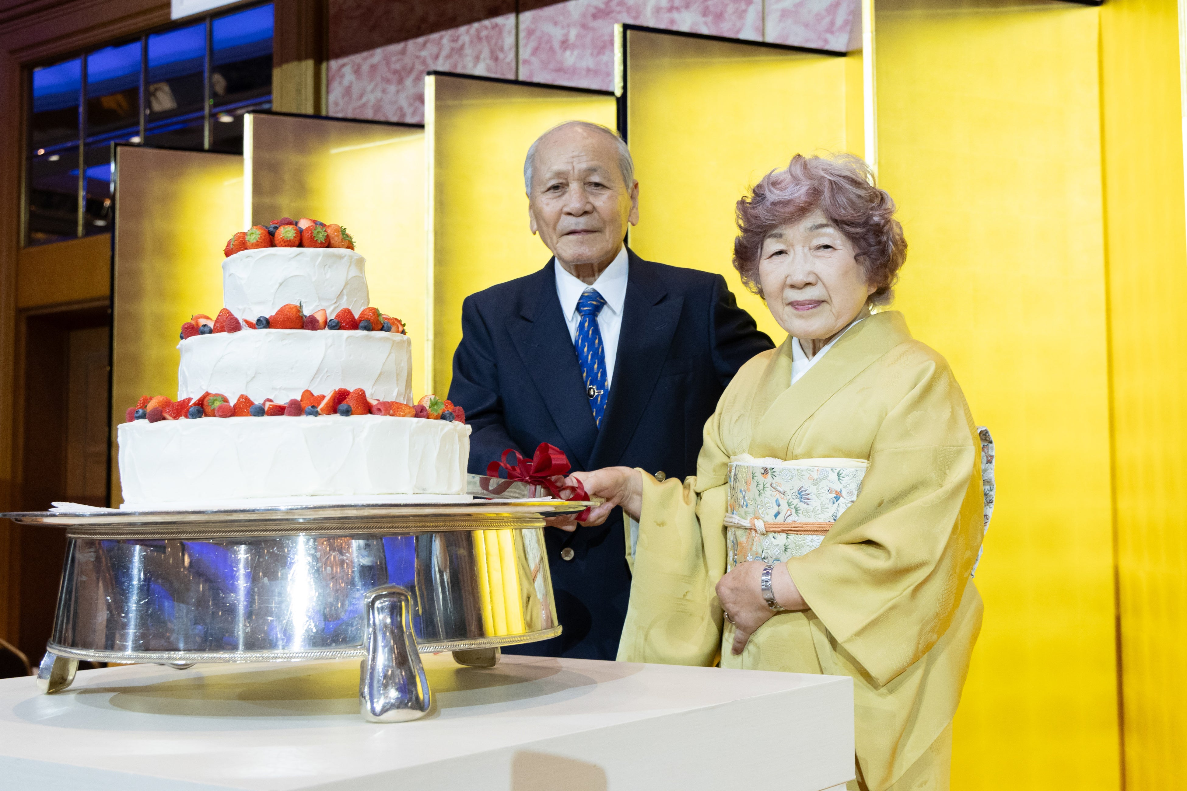 祝賀会では、同社創業者夫婦のダイヤモンド婚(結婚60年)を祝うセレモニーが行われました。