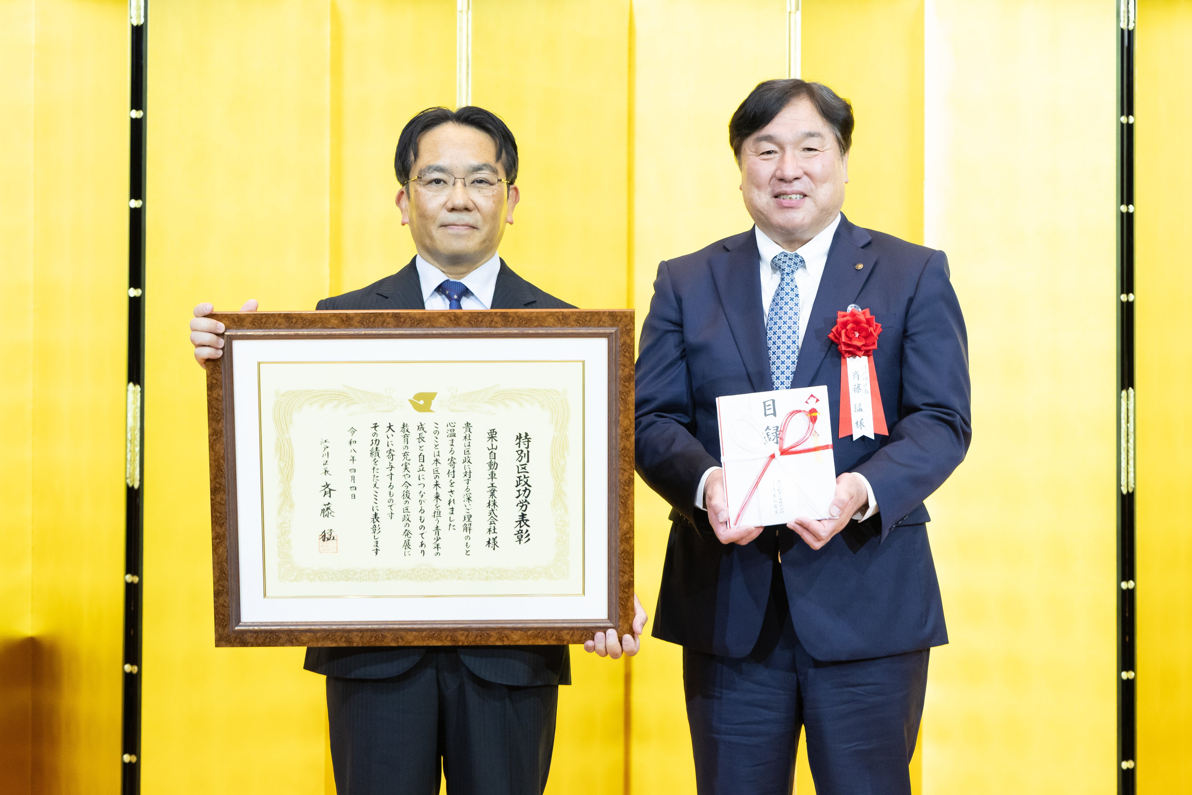 式典では、地域社会への感謝を込めた寄付金の贈呈が行われ、その取り組みが評価され江戸川区より最高位の表彰を受けました。