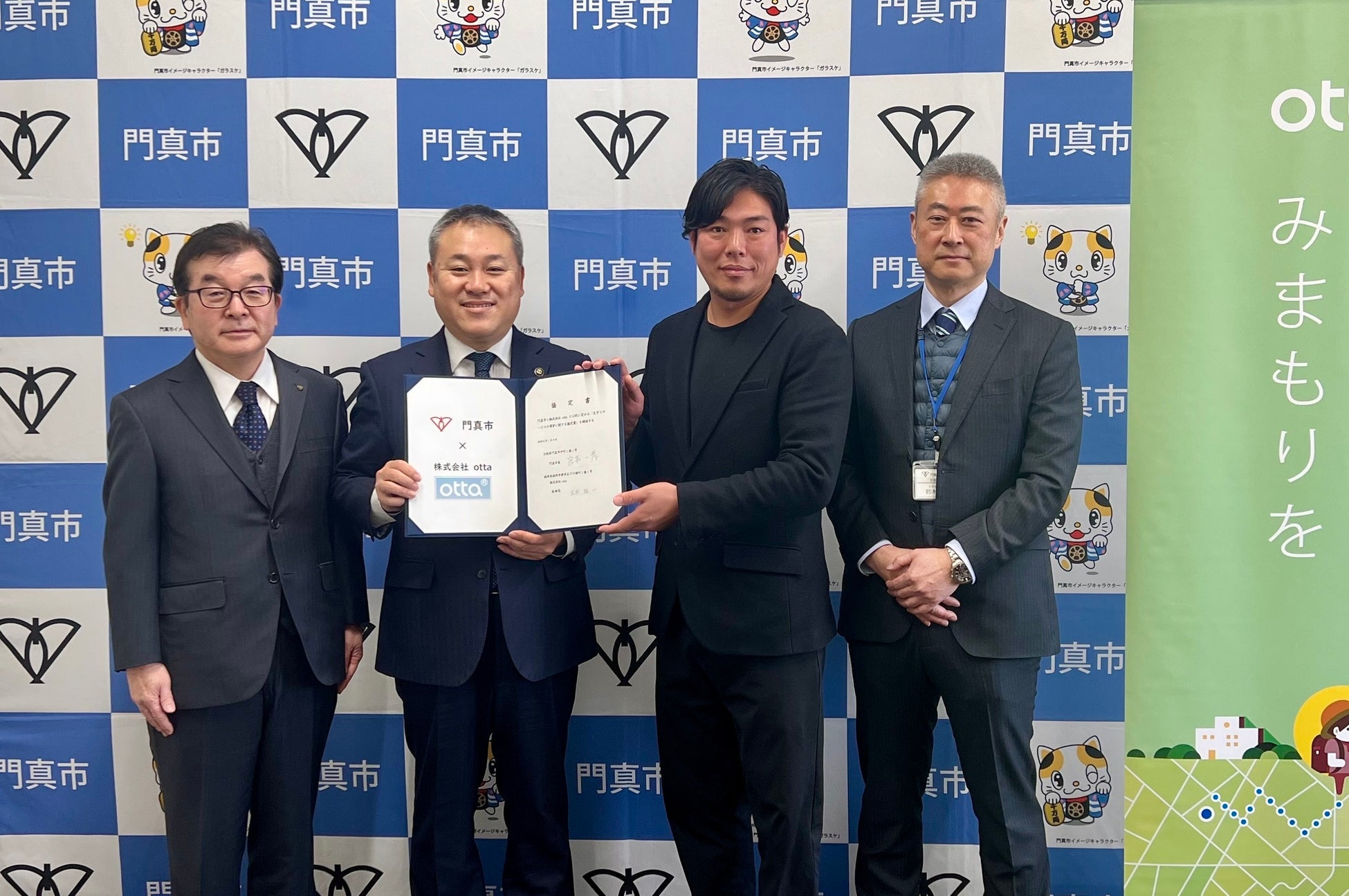 株式会社otta(本社:福岡市博多区、代表取締役社長:山本文和、以下「otta」)は、1月9日(火木)、大阪府門真市(門真市長:宮本一孝)と、子どもの安心かつ安全な暮らしを実現するため、住民サービスとして提供する「otta見守りサービス」を広く浸透させることを目的に「子どもの見守りサービスに関する協定」を締結しましたことをお知らせいたします。