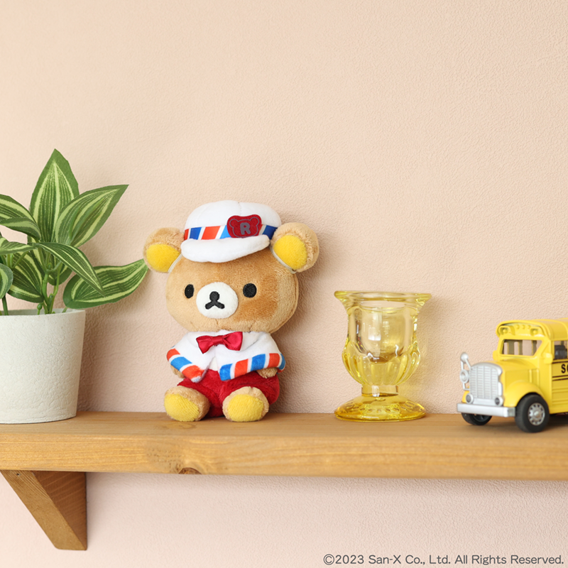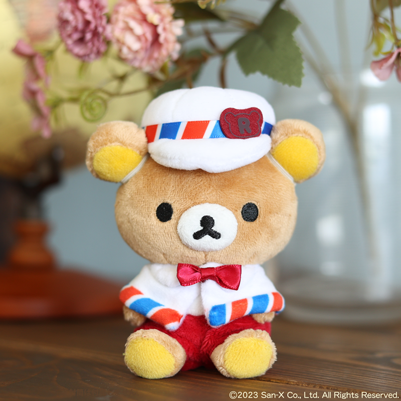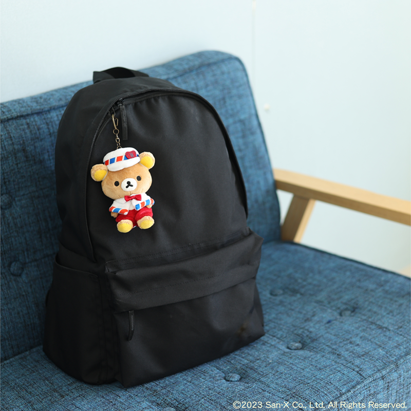 今回だけの特別なコスチュームを身に着けたリラックマおでかけぬいぐるみキーホルダー。