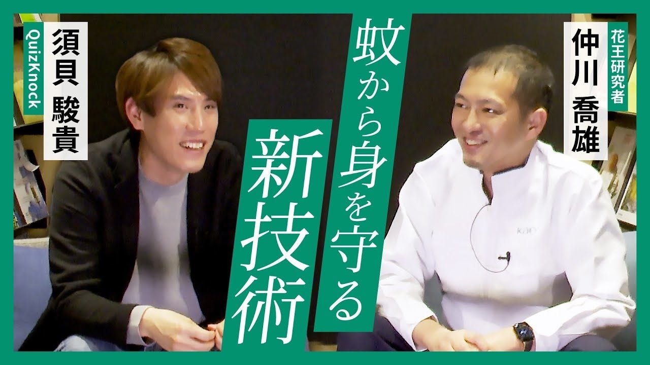 また、6月17日公開の『花王 コーポレート 花王研究員×QuizKnockスペシャル対談(https://youtu.be/wqjQL9uRF0I)』では、須貝駿貴が花王パーソナルヘルスケア研究所の仲川喬雄室長にインタビューを行い、花王株式会社の蚊の研究や、研究者という職業の醍醐味についてより詳しくお話を伺っています。
