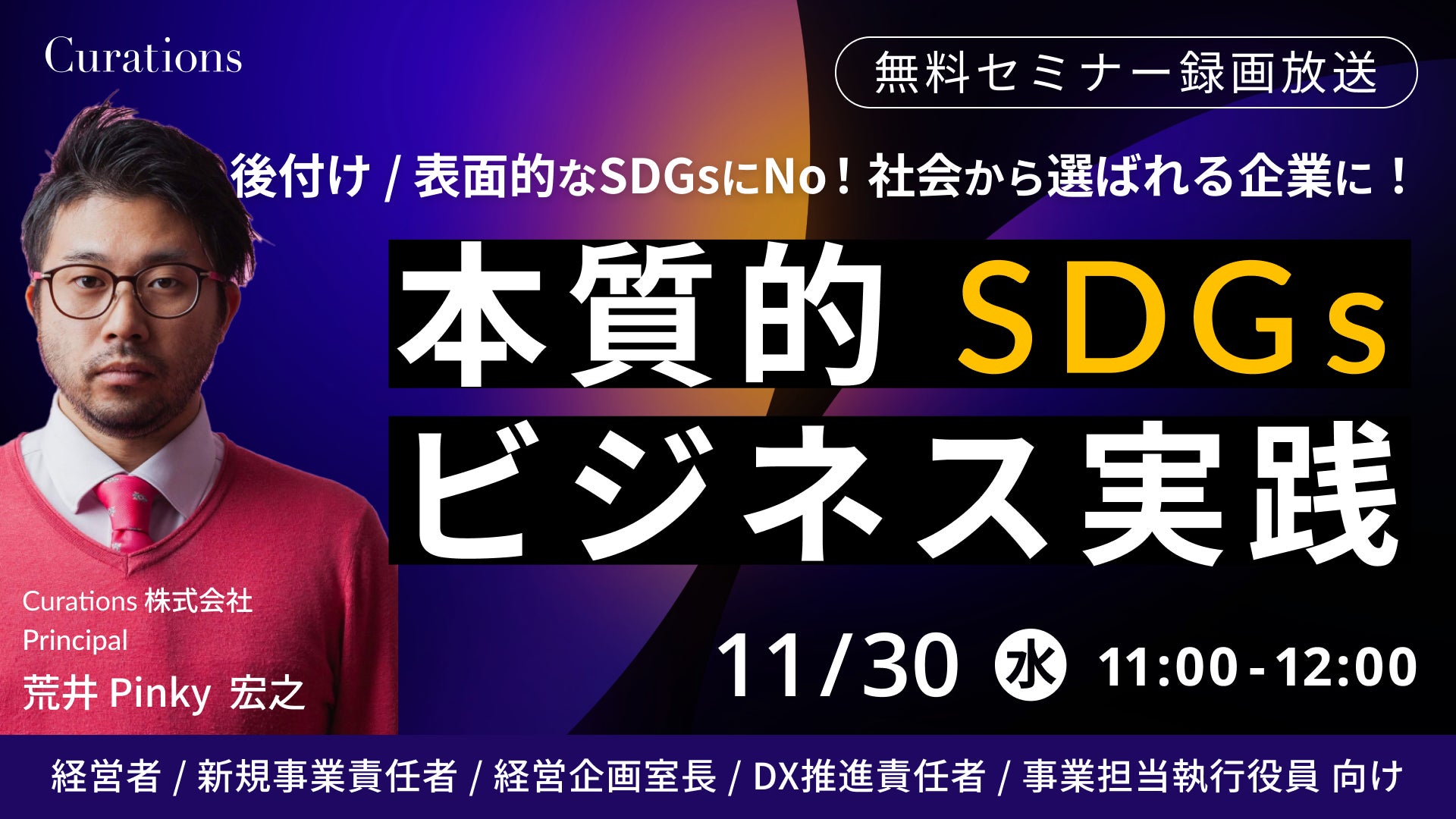 【11月30日(水)11:00〜 無料オンラインセミナー】本質的SDGsビジネス実践セミナー(録画放送)